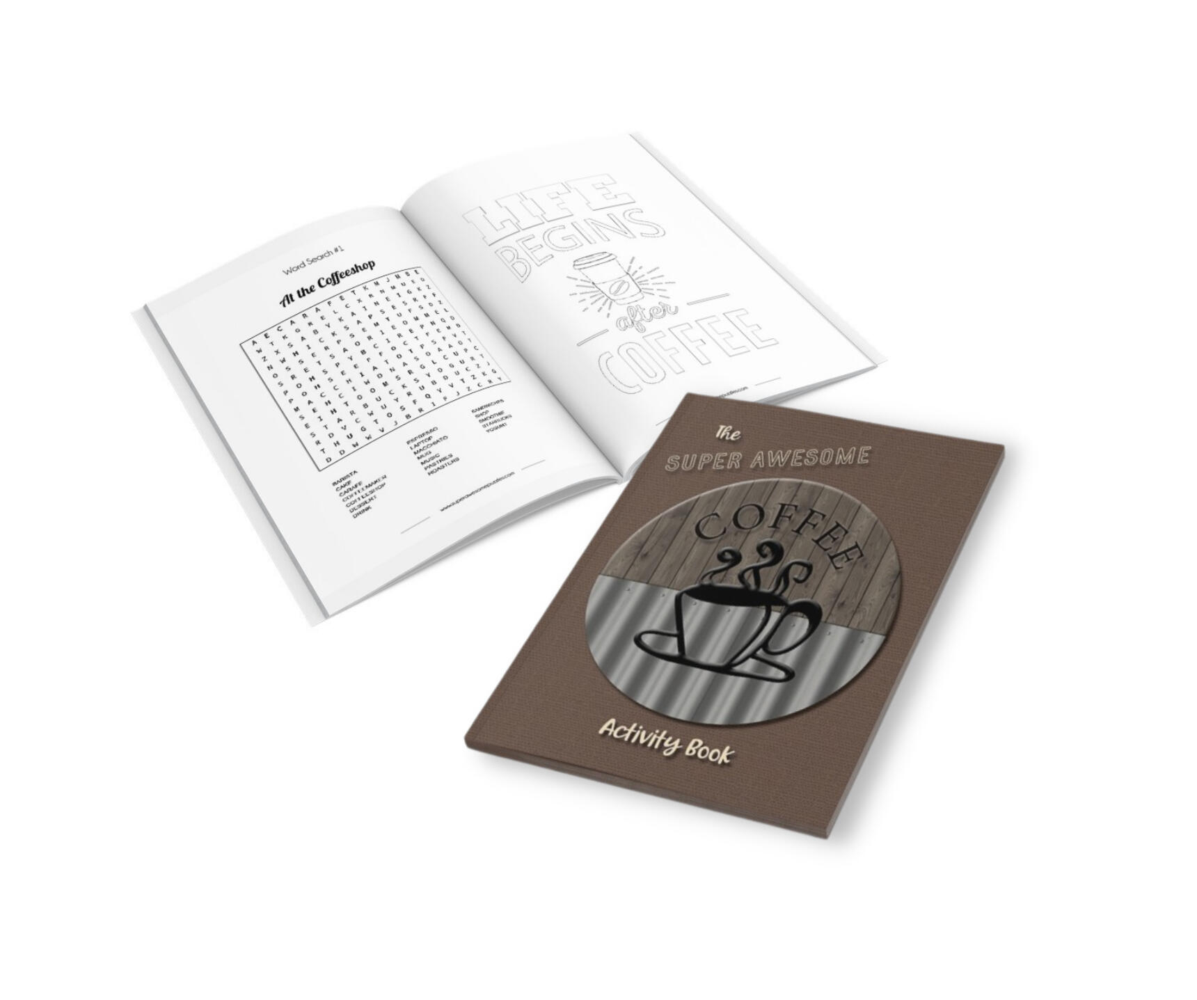 coloring pages, mazes, crosswords, trivia, cryptograms,